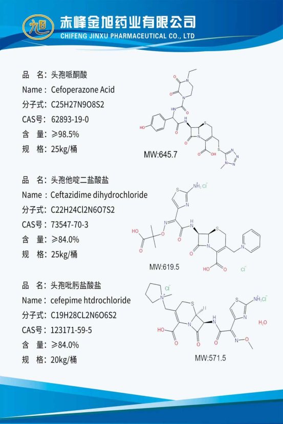 公司产品:合成头孢产品及中间体,主要产品为头孢吡肟盐酸盐、头孢哌酮酸、头孢他啶二盐酸盐、头孢噻肟酸、头孢噻呋钠粗品、头孢西丁酸、7-MAC等。培南中间体产品,4-AA、4-BMA、MAP,合成美罗培南、比阿培南、厄他培南等碳青霉烯类药物关键中间体。