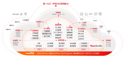 YonSuite 本着一体化设计的思想,基于用友云原生框架,实现下一代云服务包,成就一款世界级、社会化、生态化、精品化的智能云服务产品。该产品服务将聚焦于以下方面:赋能员工激活个体的人力资源、社交协同领域服务;智能规范的财务管理服务实现实时会计、业财融合与金融嵌入;敏捷高效的采购与生产供应链实现全球互联网寻源、敏捷自动化供应链、以及按单产业链生产;数字营销创新精准营销实现客户/会员线上线下全通路交易,会员全天候24 小时业务在线关怀。