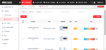 铁铁工业云模式筹备工作于2024年1月开始,7月开始正式实施。截止目前铁铁工业云在全省各地市已部署20个产业集群办事处,在临西、邢台、沧州、衡水与地方国企平台公司成立合资公司。相关业务人员近百名,包括但不限于管理团队、市场营销、平台运营、技术支撑、客户服务等专业团队,目的在各地展开持久且全面的服务工作。 铁铁工业云平台目前已接入企业245多家,包含河钢集团内部企业、供应商企业,河北省地方产业集群企业等。对多个产业集群总计100余家企业进行数字化转型服务,为临西轴承产业集群企业助销总额达约2000万,其他各产业集群分别提高产值几万到几百万不等。 目前铁铁工业云项目仍处于初期阶段,预计2025年6月前在河北省境内部署60个产业集群服务办事处,并在过程中将产业发展快、效果好、效益高的集群办事处升级为分公司,进一步深化与地方政府和产业集群的合作关系,结合产业集群特色开展产业专属业务,并将平台数据与产值留在当地,高效拉动地方产值实现新的增长。 铁铁工业云平台PC端后台管理界面(部分):