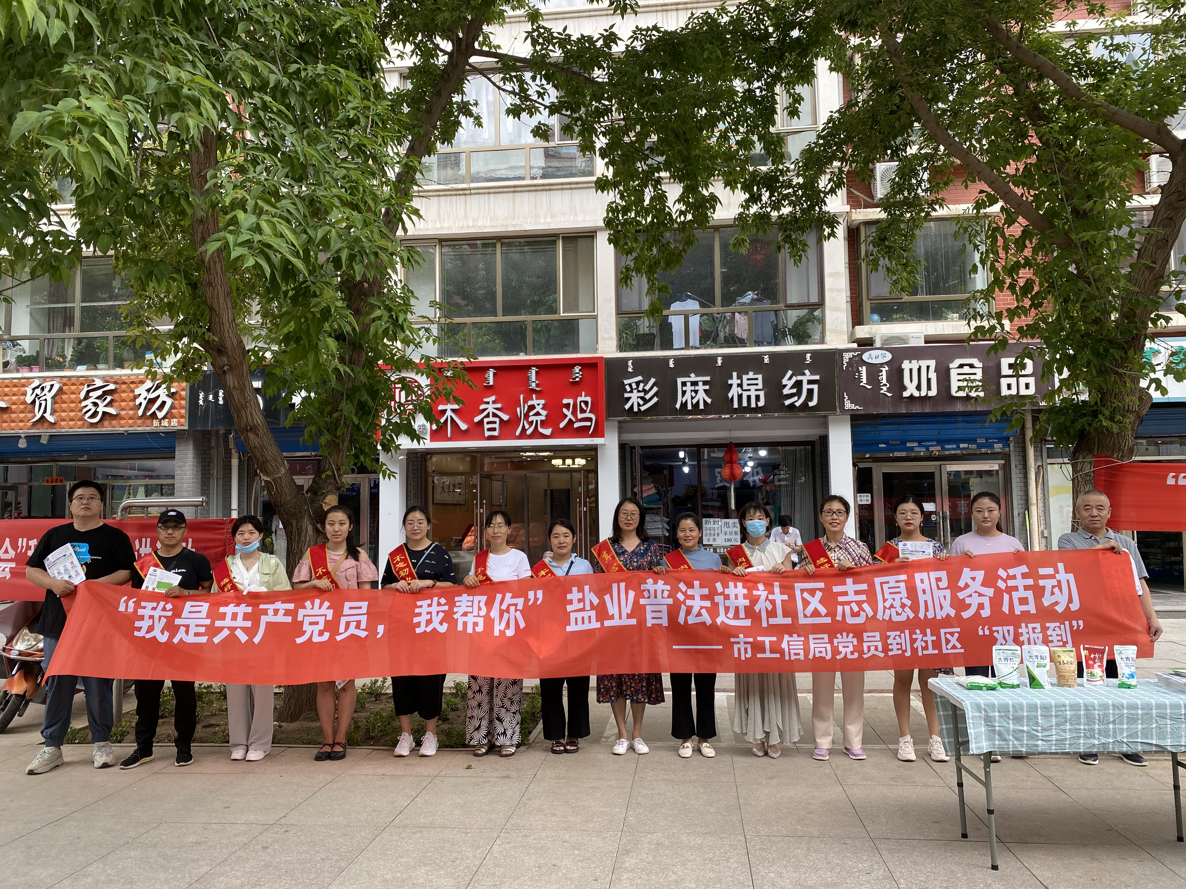 为贯彻落实好党史学习教育“我为群众办实事”实践活动,深入推动“法律六进”,7月22日上午,市工信局联合内蒙古赤峰市盐业公司走进玉龙家园社区,开展盐业普法进社区“我是共产党员,我帮你”志愿服务活动。