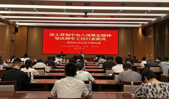 在庆祝中国共产党成立104周年之际,根据市委关于开展深入贯彻中央八项规定精神学习教育的工作部署,7月2日,市工信局党组书记、局长侯秋海以“深入贯彻中央八项规定精神 坚决树牢工信行业新风”为题,为市工信局机关及直属事业单位全体党员讲专题党课,党外全体干部一同聆听了党课。